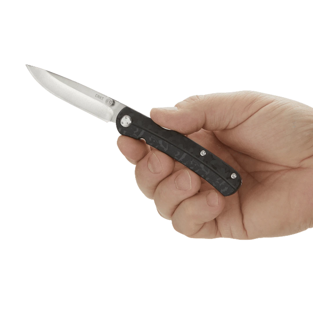 CRKT Kith Black Knife is an intuitive knife with a classy vibe. Designed by veteran knife maker Ken Steigerwalt, this knife takes inspiration from traditional midlock and backpack folders to create a whole new approach with this front lock design, which provides compete ambidextrous freedom. This blade fits in your knife like a glove, and opening the blade feels second-nature, giving this knife’s Old English name for “friend” a whole other meaning. This knife is new yet familiar. The lock feature utilizes the liners as springs to create space for the slim, tough blade. At 2.95″, this drop point blade features a sturdy tip, great for piercing and cutting jobs. With a clean aesthetic and multiple grip and carry options, as well as checking boxes for both durability and lightweight ness, this knife is great for your everyday carry.Â