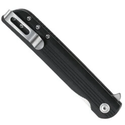 This flipper model features black GRN handle scales complete with carbon fiber underlays, a modified sheepsfoot style blade in a black finish and the pocket clip is designed for tip up carry only.