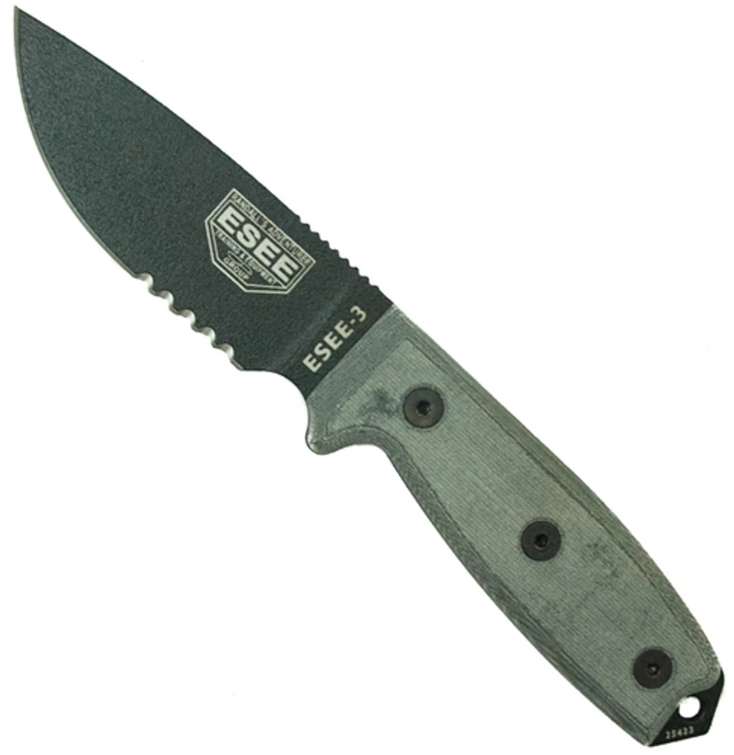 Be the first to review “ESEE Knives RC3S Fixed Blade Knife, Black Blade, Part Serrated, Linen Micarta Handle, ESEE-3S” Cancel reply