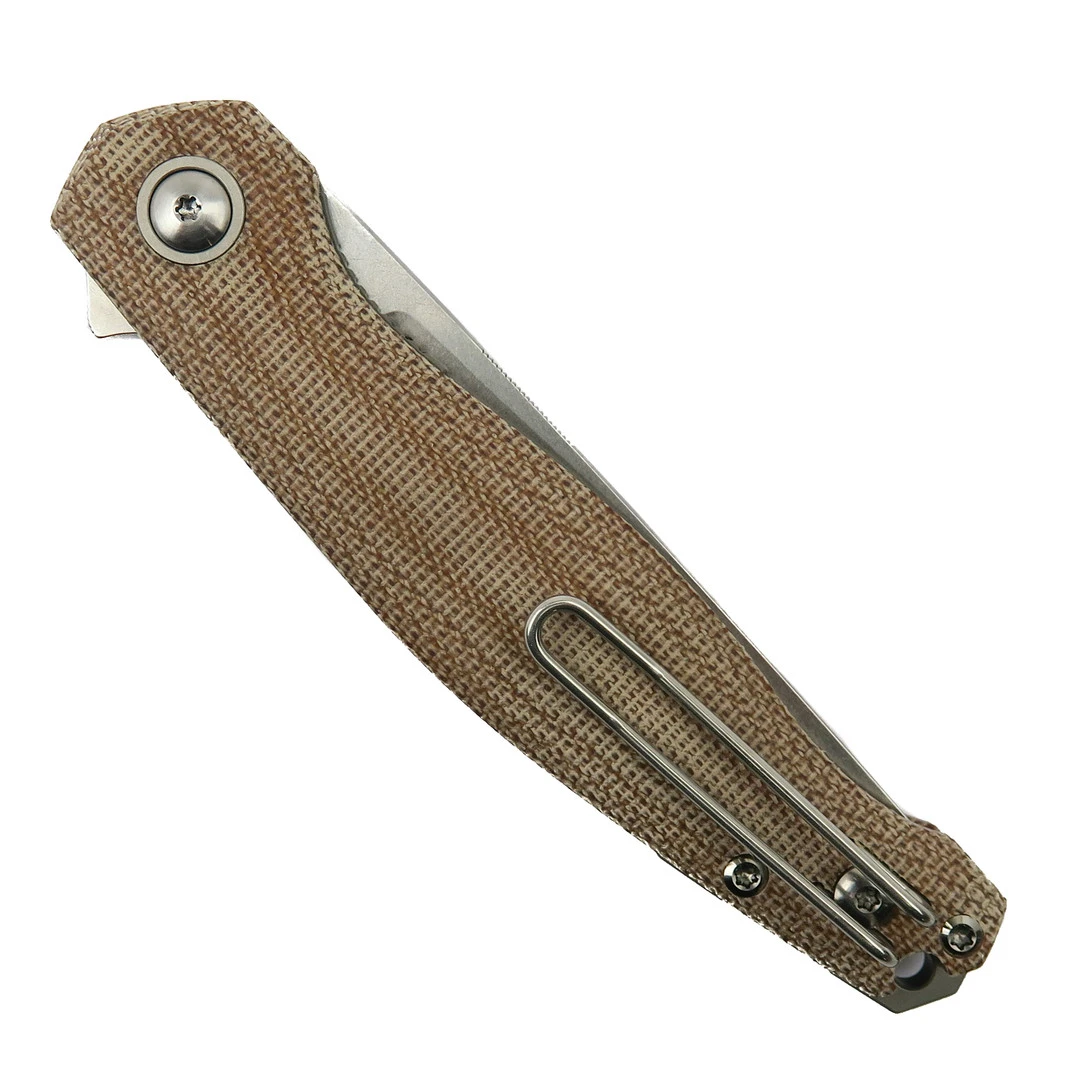 The GiantMouse SonomaNatural Canvas Micarta Folder Knife is a slender knife designed for maximum ergonomic comfort. With a satin blade made of Elmax steel and a contoured handle made of Canvas Micarta, this knife is versatile and elegant. This is a tough, sleek knife that is a fantastic addition to your everyday carry.Â