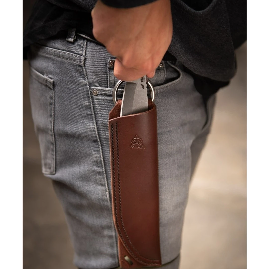 The high saber grind makes it a superior tool for processing wood and skinning game while the tip swedge gives you a fine point for boring holes.